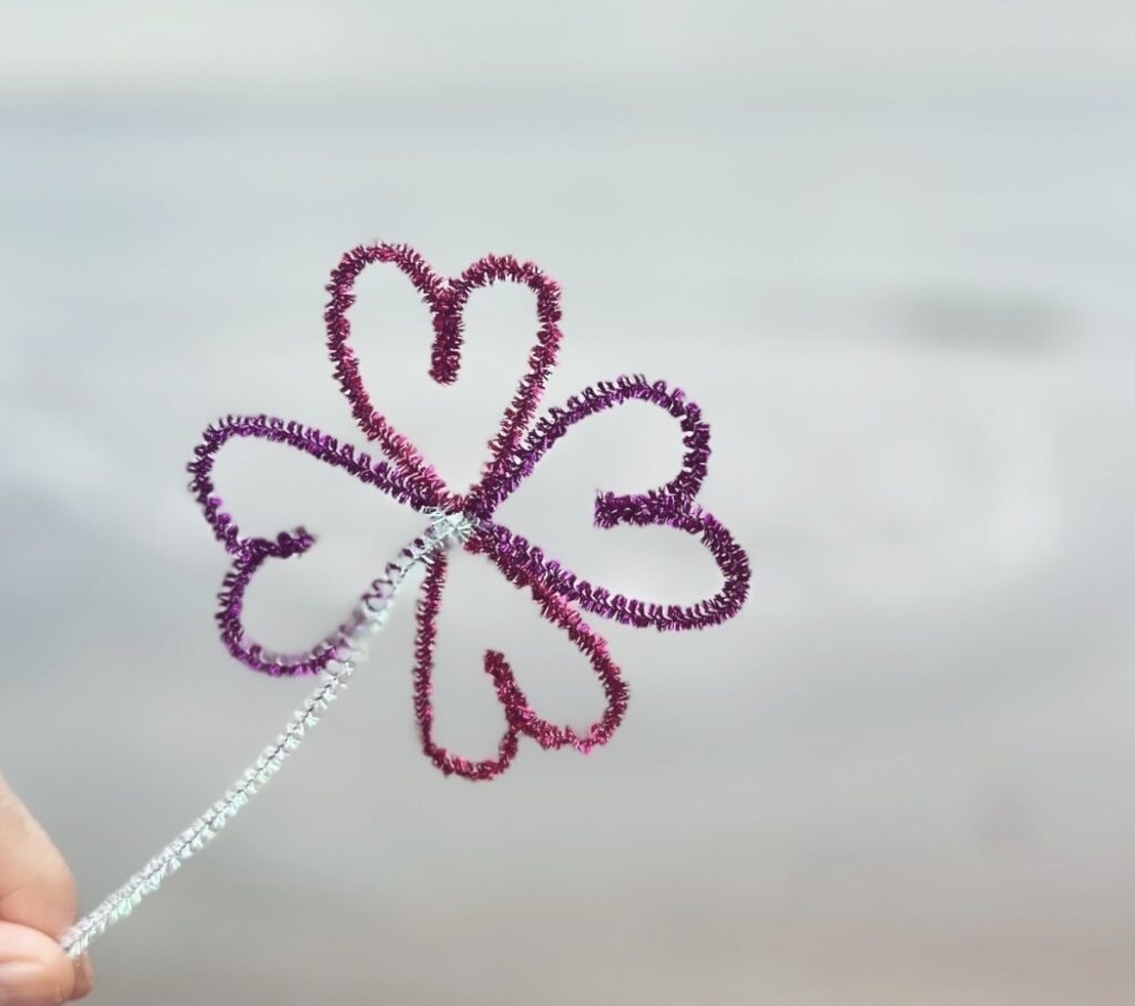 - 針金を曲げて、円形を作ります(シャボン玉液を入れる大きさに合わせてね)別で切っておいた針金を付けて持ち手をつけます。
